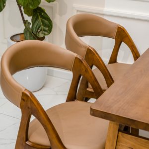 Bộ bàn ăn gỗ 4 ghế được sản xuất từ chất liệu gỗ cao su tự nhiên đã qua tẩm sấy kỹ lưỡng, đảm bảo chất lượng, không bị cong vênh và mối mọt theo thời gian. Bề mặt được phủ sơn PU cao cấp giúp chống ẩm, hạn chế các vết trầy xước và an toàn cho sức khoẻ người dùng.