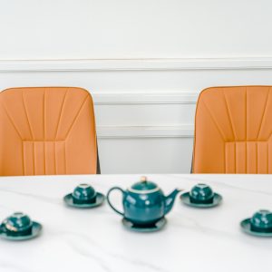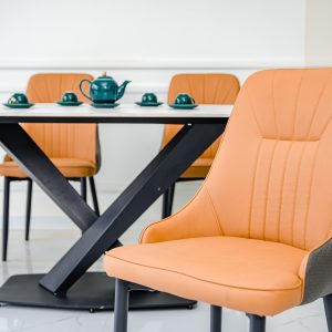 Mẫu bàn ăn nhập khẩu thiết kế hiện đại với những đường nét tinh tế, kết hợp hài hòa từ bàn mặt đá cùng ghế da đem lại vẻ đẹp sang trọng và tiện nghi cho không gian bếp.