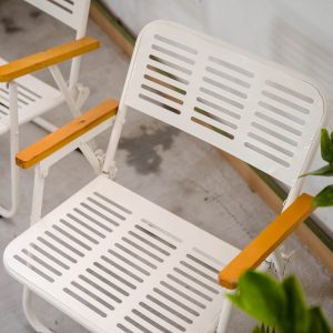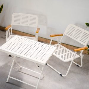 Bộ bàn ghế xếp sắt CNC sơn tĩnh điện màu trắng