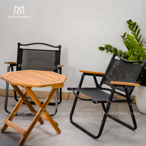 Bộ bàn gỗ xếp bát giác kết hợp với ghế camping với kích thước nhỏ gọn tiện lợi thích hợp cho việc kinh doanh cà phê, du lịch dã ngoại.